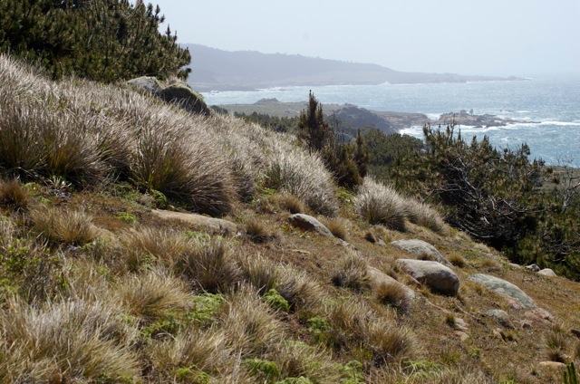 A large handsome bunch grass from the coastal regions of Monterey County to Alaska that forms huge tussocks in open moist meadows and on coastal bluffs. It can also be found as an understory at the edges of coniferous forests. Wide green blades grow 2 – 3 ft. tall with flowering culms to 4 ft. Good background or accent plant for the woodland or meadow. Will take full sun in somewhat cooler areas. Best with some summer water and partial shade inland. Deer resistant.