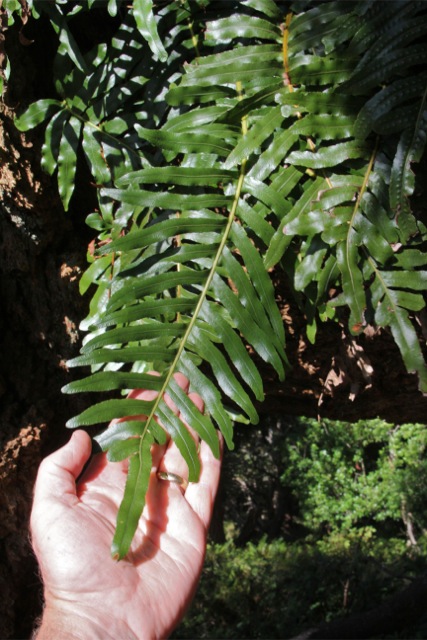 A choice species native to moist coastal forests of the western U.S. where this fern will grow on trees, rocks and logs. Beautiful, leathery, deeply lobed, evergreen fronds grow on creeping rhizomes to about 8-12 inches tall and slowly spreading. Requires good drainage with a humusy soil and some summer moisture, but not overly wet. Wonderful on rocks, cracks in walls, and logs in shady locations. Excellent in containers. Makes a lovely hanging basket.