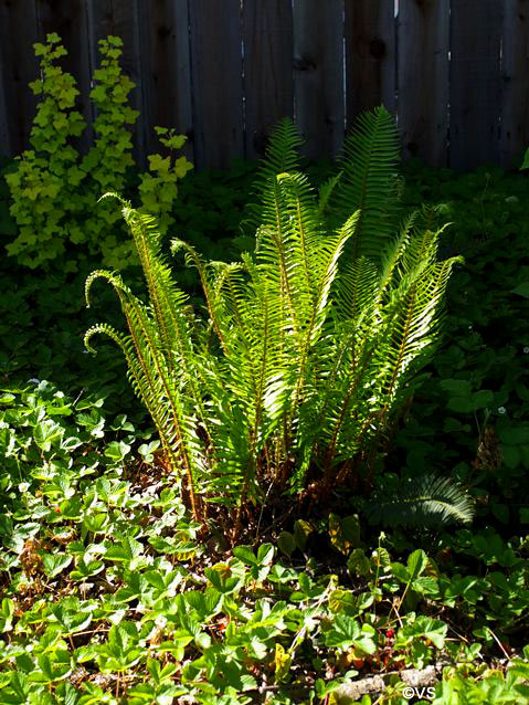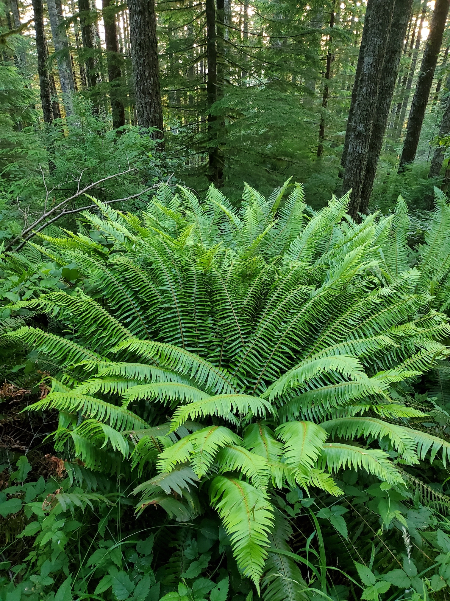 The versatile western sword fern is an evergreen native fern from California to Alaska. In most gardens it will reach about three feet tall and wide. In prime areas near the coast where moisture is readily available and cool temperatures prevail, this fern can get up to 5 feet tall and wide. Excellent for shady beds, along walls, as a large scale groundcover and mixed woodland planting. Best with humusy soil and regular to moderate water, but drought tolerant once established and tolerant of most soil types. Actually quite adaptable and deer resistant.